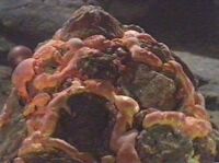 [[Image:horta2.jpg|thumb|right|The Venerable Mother Horta]]The Horta (Hortensia acidophlangia) species are indigenous to [[Janus VI.]] They are one of a very few known silicon based life forms [[http://en.wikipedia.org/wiki/Alternative_biochemistry]] ever discovered and are composed of a material similiar to fibrous asbestos. They were discovered by the human (Homo sapiens) mining colony on Janus VI, the only known naturally occuring source of the mineral [[pergium]], when the miners inadvertantly broke into the Horta's hatchery. See [[http://en.wikipedia.org/wiki/The_Devil_in_the_Dark]] for more on how the Horta species was discovered and found to be peaceful and sentient. They consume rock, minerals, and metallic ores by liquifying it with a very strong highly corrosive acid exuded from their undersides and then swiftly ingesting the resulting mixture. The acid, upon exposure to air oxidizes harmlessly and within a few minutes is neutralized. In feeding, they create tunnels and other underground cave-like structures and are the greatest natural geologists and miners in the known universe. | [[Image:horta2.jpg|200px|thumb|right|The Venerable Mother Horta]]The Horta (Hortensia acidophlangia) species are indigenous to [[Janus VI.]] They are one of a very few known silicon based life forms [[http://en.wikipedia.org/wiki/Alternative_biochemistry]] ever discovered and are composed of a material similiar to fibrous asbestos. They were discovered by the human (Homo sapiens) mining colony on Janus VI, the only known naturally occuring source of the mineral [[pergium]], when the miners inadvertantly broke into the Horta's hatchery. See [[http://en.wikipedia.org/wiki/The_Devil_in_the_Dark]] for more on how the Horta species was discovered and found to be peaceful and sentient. They consume rock, minerals, and metallic ores by liquifying it with a very strong highly corrosive acid exuded from their undersides and then swiftly ingesting the resulting mixture. The acid, upon exposure to air oxidizes harmlessly and within a few minutes is neutralized. In feeding, they create tunnels and other underground cave-like structures and are the greatest natural geologists and miners in the known universe. | ||