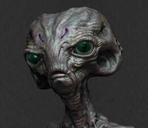 Not much is known about the Soladrin physiology. They did not breathe oxygen, instead using Helium and Methane as their primary respiratory gas. They possessed excellent eyesight due to large oversized eyes and it is speculated that they were capable of seeing into light spectrums that were beyond the capability of a human. In addition to their eyesight, it is believed that they also possessed keen sense of hearing. | |||
