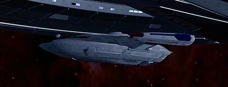 It contained a cockpit (with dedication plaque), a small Transporter and cargo area, and a docking port which made a direct connection to the mothership. It was capable of atmospheric flight and landing on a planetary surface. It could also generate tachyon bursts. Only one pilot was needed to fly the craft.