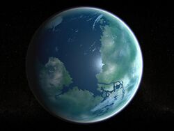 The planet is the only one in the system that is habitable without artificial habitats, and it possesses a massive hydrosphere.